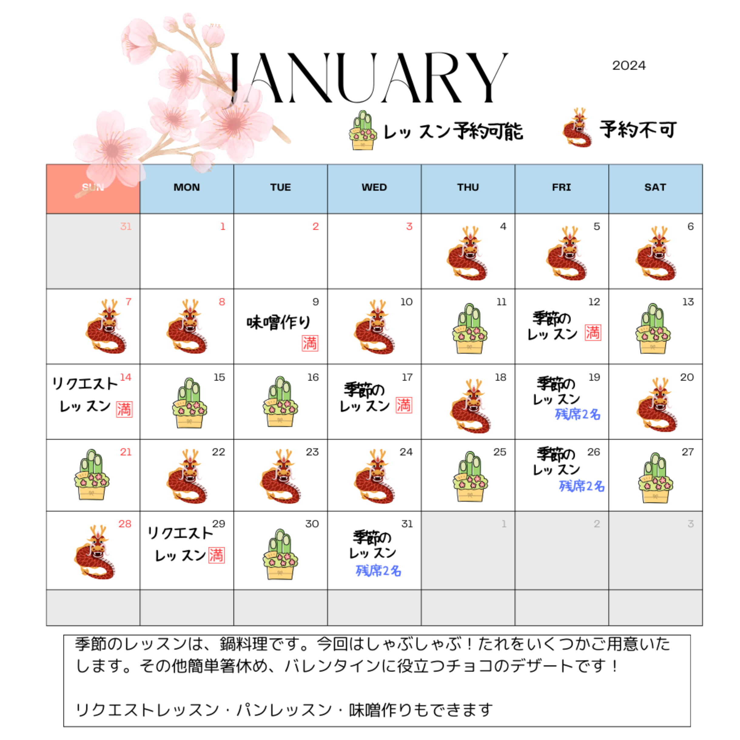 1月選べるレッスン
